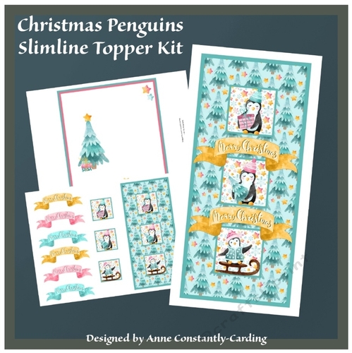 Christmas Penguins Slimline Topper Kit - Teal